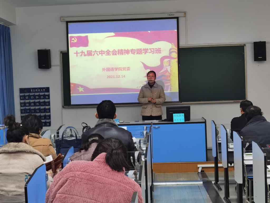 为了深入学习贯彻十九届六中全会精神,进一步扎实推进党史学习教育,12月14日下午,350vip8888新葡的京集团在学院418语音室、408语音室举行了十九届六中全会精神专题学习班(教师班和学生班)的开班仪式,学院全体党员参加。