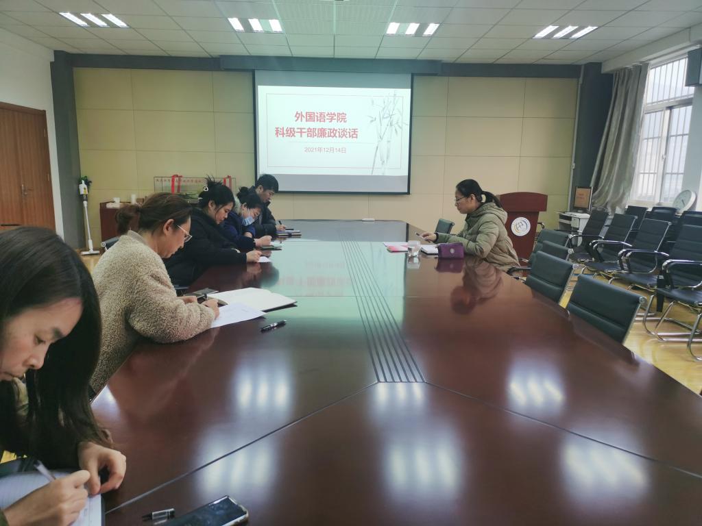 12月14日下午,350vip8888新葡的京集团党委在学院517会议室进行科级干部廉政谈话。学院党委书记曲斌艳代表学院党委对学院所有科级干部进行了集体谈话。