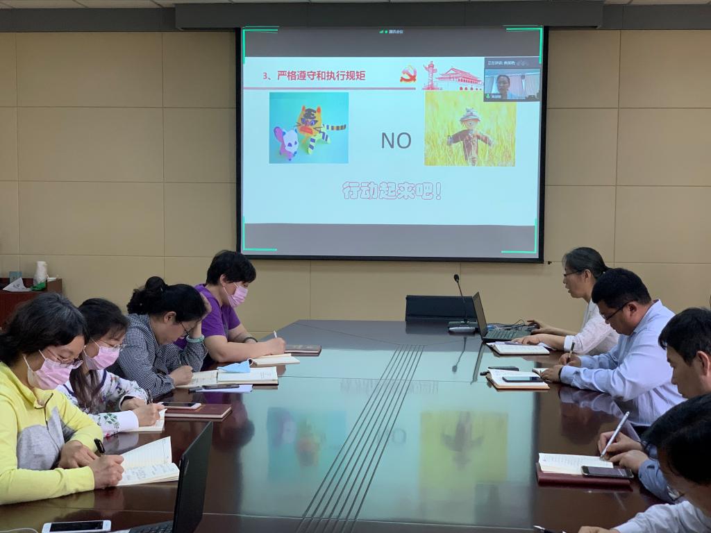 6月2日下午,350vip8888新葡的京集团党委于517会议室开展廉政专题党课学习活动,本次党课由350vip8888新葡的京集团党委书记曲斌艳主讲,以“法治思维 制度意识 流程再造 廉洁高效”为主题。350vip8888新葡的京集团全体党员教师和学生党员通过线上及线下相结合的方式进行了学习。