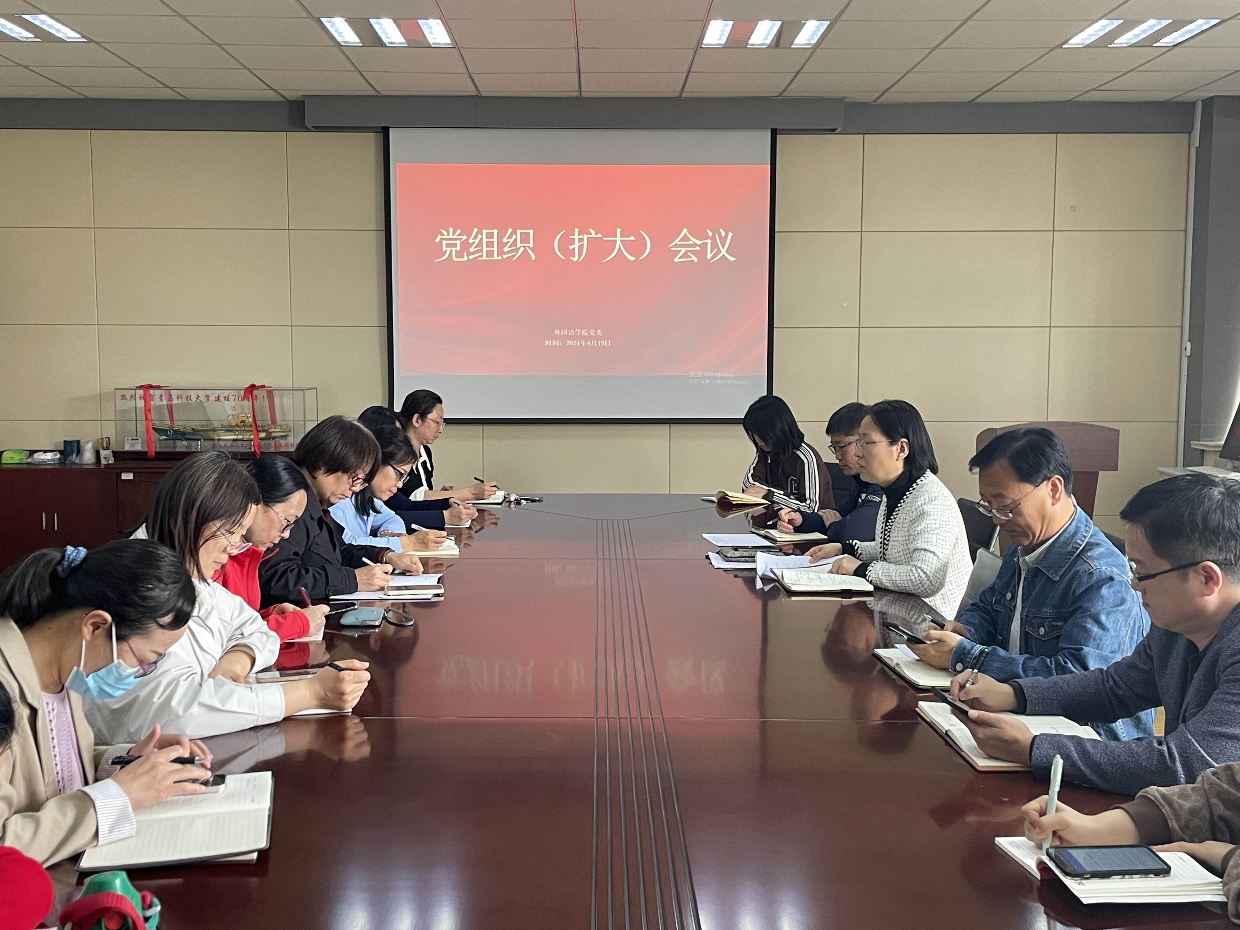 4月19日下午,350vip8888新葡的京集团党委在学院517会议室召开党组织(扩大)会议,学习习近平总书记关于开展党纪学习教育的重要讲话和重要指示精神以及上级会议、文件精神,并结合学院实际进行部署。会议由学院党委书记曲斌艳主持,学院党委委员、各支部委员会成员参加。