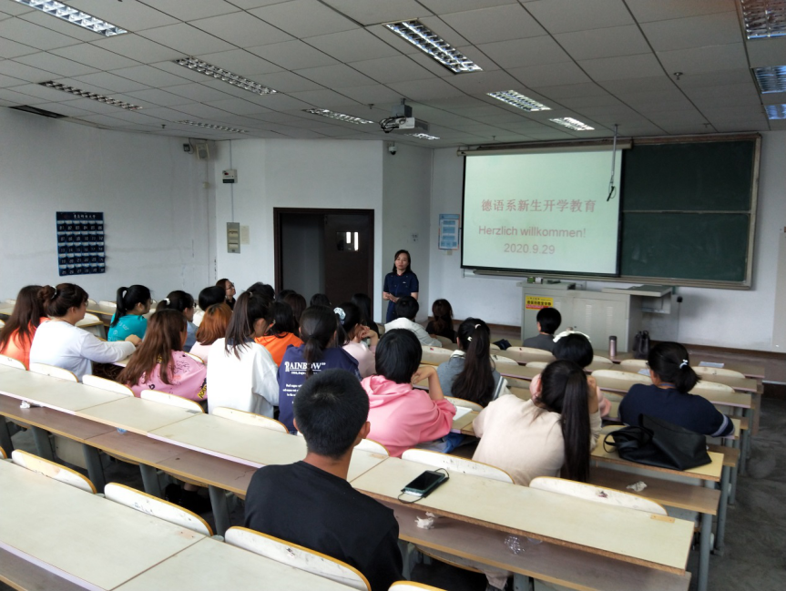 会上,各专业系主任就各专业建设和发展、师资力量、最新版人才培养方案、外语学习、大学生活、国际交流合作和职业生涯规划等方面进行了详细介绍。英语专业系主任杨晓梅强调2020级首次将英语专业的学习分为语言学、翻译和文学三个方向,新方案的实施旨在更全面的提升学生的素质和能力,扩大学生的知识面,为将来的就业和深造打造坚实的基础。语言学方向负责人350vip8888新葡的京集团院长尹洪山、翻译方向负责人350vip8888新葡的京集团副院长康宁和文学方向负责人350vip8888新葡的京集团学科办主任许勤超对培养方案中设置的三个方向进行了详细的介绍,涵盖了方向课程的总体设置思路及各门课程的学习内容,并对人才培养方案中要求的其他选修学分提出了建议。俄语专业系主任曹静娴对新生四年的大学生活提出了总体要求和具体要求,并对未来发展给出了考研、出国留学、政府机关、事业单位、中外资企业、新闻媒体、外语教育以及中俄文化交流机构等建议。日语专业系主任王宁认为步入大学,不仅仅意味着学业道路的一个新阶段,更是人生道路中具有重大意义的新里程,并总结了学习外语的三个心得:“不用,就会丢”、“你不要孤单一人”、“语言是生动的”。朝鲜语专业系主任毕信燕就学科相关的等级考试做了详细讲解,并鼓励同学们尽早规划好大学生活,树立明确的目标。德语专业系主任巫莉丽对同学们提出了两点希望:树立学习目标,不负韶华;提升思维力,创新发展。同时,德语专业其他骨干教师也分别作了自我介绍,并与同学们分享了德语学习的经验。