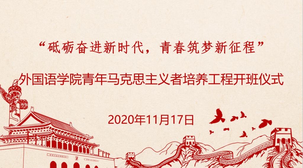 11月17日下午,350vip8888新葡的京集团在明德楼325教室举行学习党的十九届五中全会精神讲座暨2020年“青年马克思主义者培养工程”培训班开班仪式。马克思主义学院院长曹胜教授受邀参加,350vip8888新葡的京集团党委书记曲斌艳、学院全体专兼职辅导员及全体青马班学员参加了开班仪式。仪式由350vip8888新葡的京集团党委副书记兼副院长王晓娜主持。