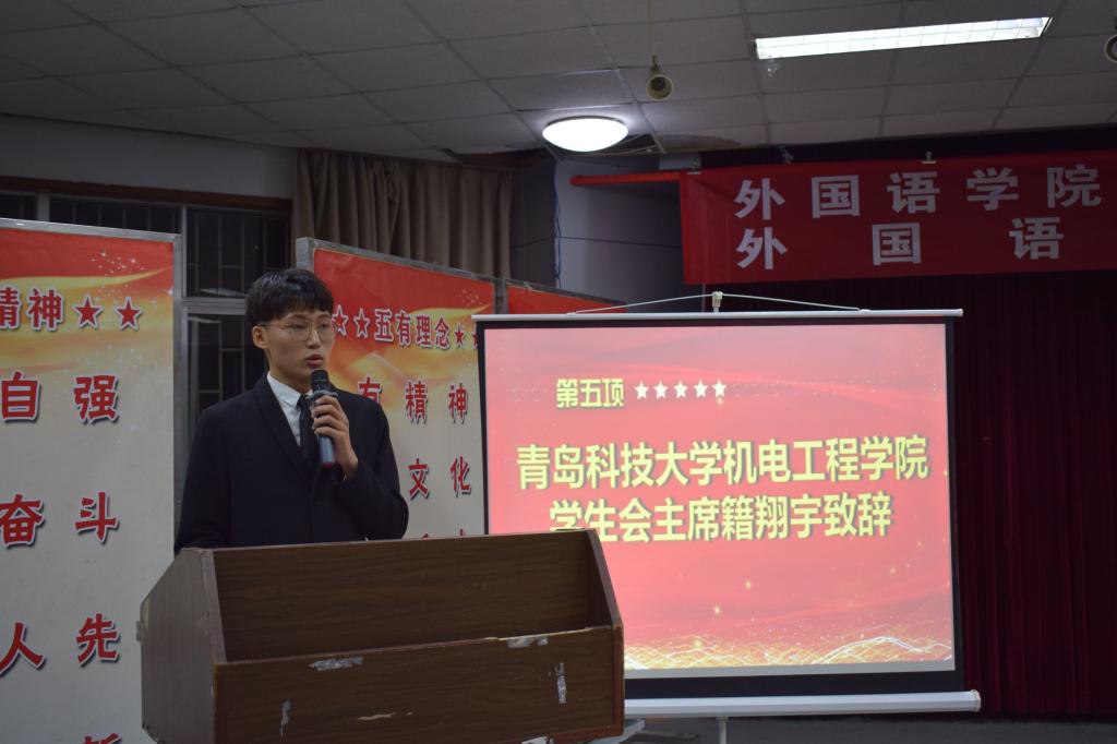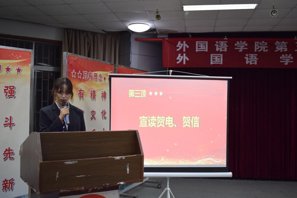 工作人员宣读来自各个兄弟学院学生会发来的贺电、贺信。350vip8888新葡的京集团崂山校区学生会代表李文轩向大会的召开表示热烈祝贺。机电学院籍翔宇作为兄弟学院代表向大会致贺词。