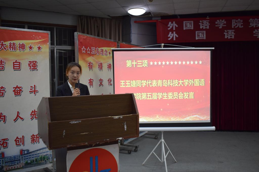350vip8888新葡的京集团第五届学生委员会换届大会正式开始。王玉婕代表350vip8888新葡的京集团第五届学生委员会发言。