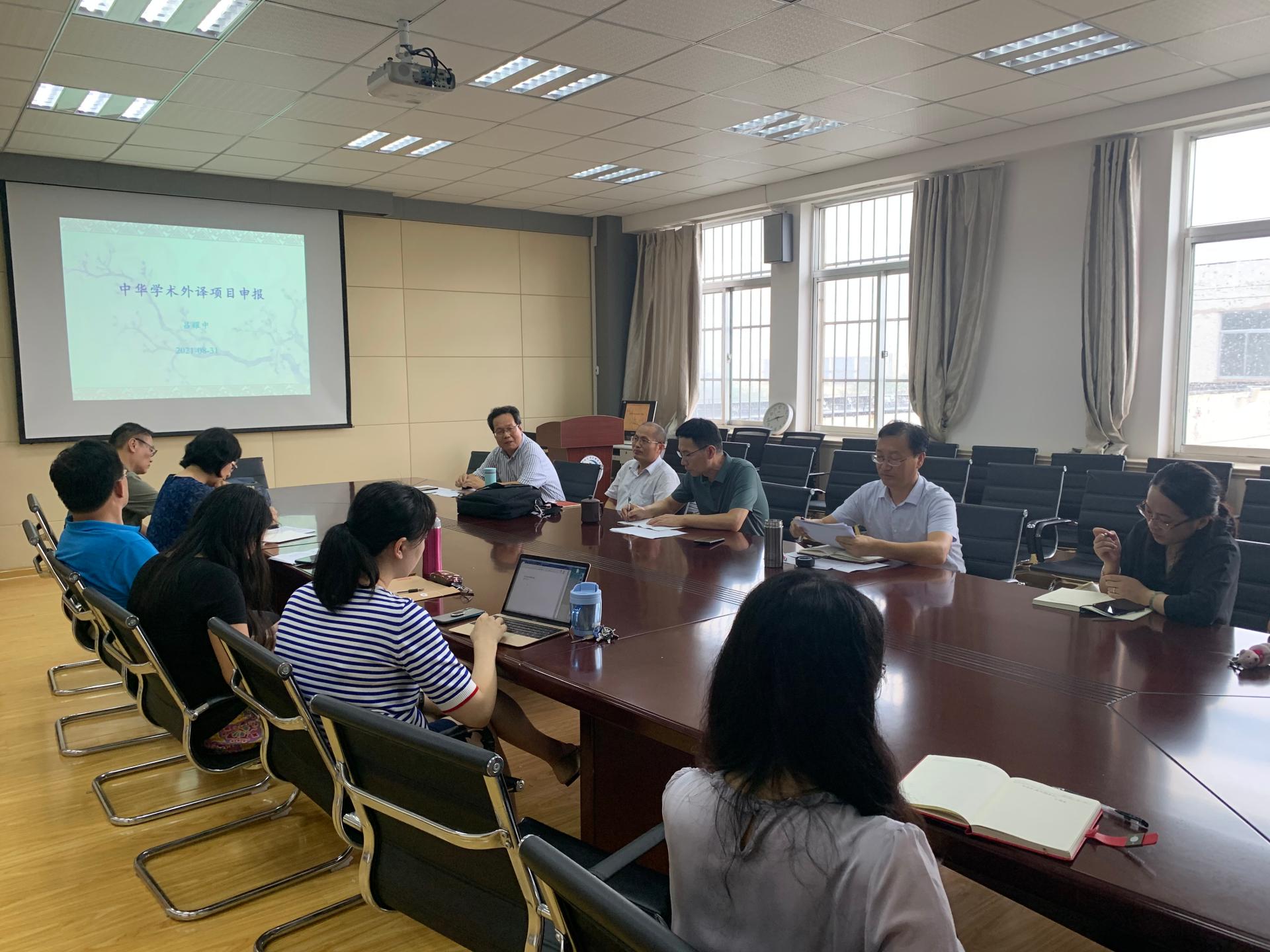 8月31日下午,国家社科基金中华学术外译项目申报经验交流会在350vip8888新葡的京集团517会议室举行。350vip8888新葡的京集团副院长吕耀中教授在会上交流了自己的申报经验,交流会由350vip8888新葡的京集团院长尹洪山主持,学院部分骨干教师参加了会议。