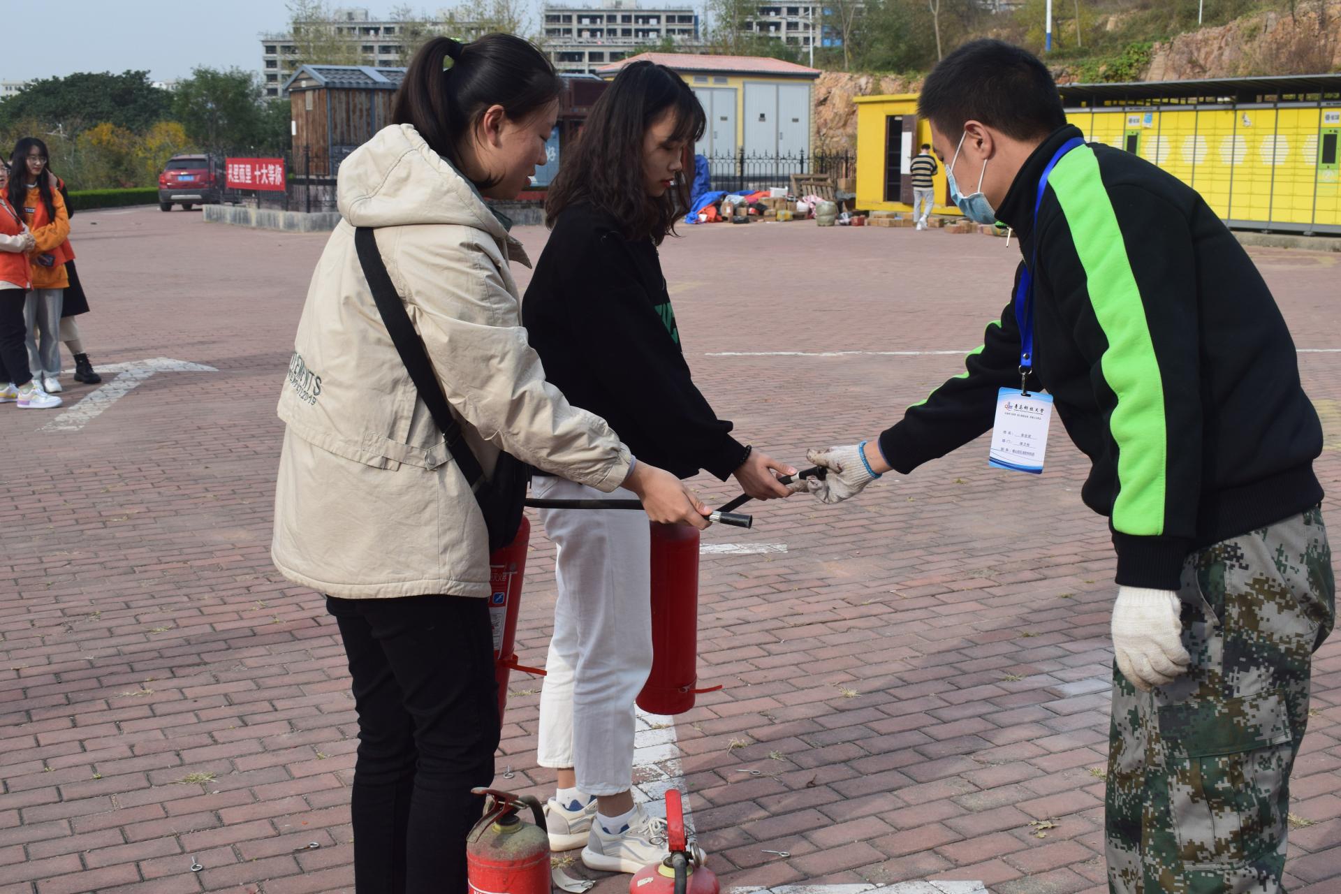 此次活动分为消防疏散演练和灭火演习两个部分。在350vip8888新葡的京集团楼下,350vip8888新葡的京集团院长尹洪山为即将开展的消防演练致辞,宣布消防演练正式开始。安全保卫科赵淑东老师向参演学生介绍完善、系统的消防知识,用通俗易懂的语言向同学们阐述了火灾的危险性,深刻剖析了火灾发生的原因和预防措施。在北苑餐厅停车场,安全保卫科余全波老师为同学们演示灭火器使用维护方法及注意事项,同学们亲身体验了用干粉灭火器灭火的操作,正确、快速地完成了灭火过程。