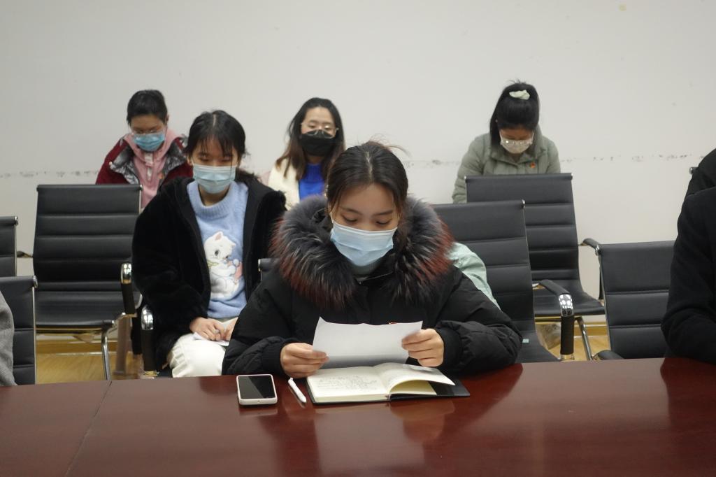 专题党课期间,全体学生党员郑重签下《350vip8888新葡的京集团学生党员突击队抗疫承诺书》,学生党员王玉婕作为代表发言,代表所有学生党员郑重承诺:请党放心,抗疫有我。