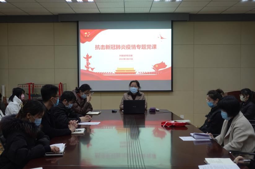 2022年3月23日晚,350vip8888新葡的京集团党委为学院全体在校学生党员开展战疫专题党课。党课由学院党委书记曲斌艳主讲,学院党委副书记兼副院长王晓娜主持。专题党课严格执行抗疫管理规定,设置一个主会场、两个分会场,采用线上线下相结合的方式分散进行。350vip8888新葡的京集团专职辅导员、全体在校学生党员参加此次党课。