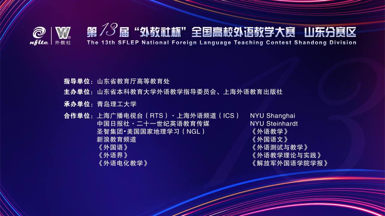 5月21日,第十三届“外教社杯”全国高校外语教学大赛山东省决赛在云端落幕。新葡京官网参赛教师、团队在大赛三个组别的赛事中取得佳绩,获得一等奖一项,三等奖两项。其中刘艳艳老师荣获英语(视)听说课组一等奖,孟静老师团队荣获英语思政微课组三等奖;陈宜各老师获得英语综合课组三等奖。