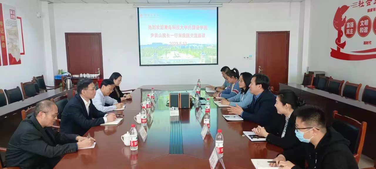 5月12日,院长尹洪山、副院长康宁、学科建设办公室主任许勤超和翻译硕士教育中心主任房钰一行4人赴潍坊医学院350vip8888新葡的京集团开展工作调研和业务交流。