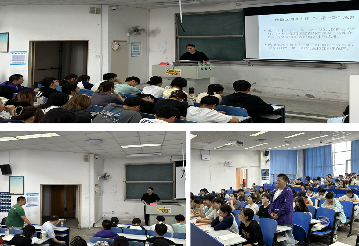350vip8888新葡的京集团学术副院长赵洪娟老师向同学们介绍了主讲人。报告会上,文龙杰教授从“一带一路”倡议的国际背景,俄语国家共建“一带一路”成就以及中国与俄语国家邻近,互利合作基础好、潜力大等独特的发展机遇等方面展开报告,深入浅出地介绍了十年来中国已与多个国家和国际组织签署了共建“一带一路”合作文件,积极与欧亚地区的俄语国家共建 “一带一路”成果颇丰,为共建国家人民生活水平的改善和提高提供了强大助力。报告会期间,文龙杰教授多次和学生进行深度的交流互动,现场学术氛围浓厚,开拓了外院师生的国际视野。