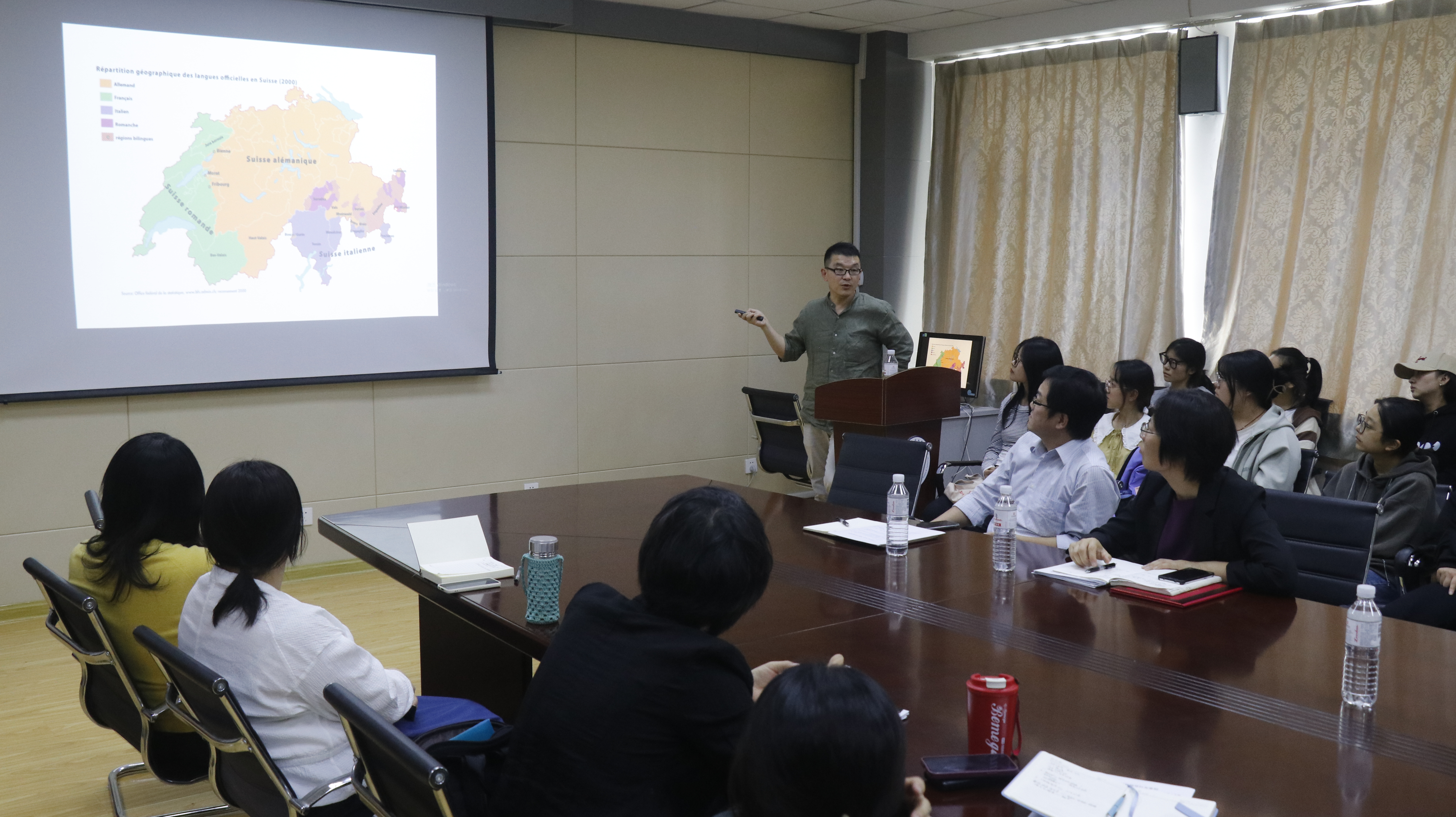 最后,法国索邦大学访问学者、外交部派驻日内瓦代表团成员、350vip8888新葡的京集团教师申永杰进行了“侨星论坛”的专题讲座《驻日内瓦代表团见闻》。申老师从日内瓦的地理历史、驻日内瓦的国际组织、日内瓦代表团工作见闻、瑞士风土人情等方面介绍了自己作为外交部派驻日内瓦代表团成员的经历、见闻,并分享了自己的驻外感悟,号召同学们打好扎实的语言基本功、拥有多种语言能力、勇敢走向国际舞台。