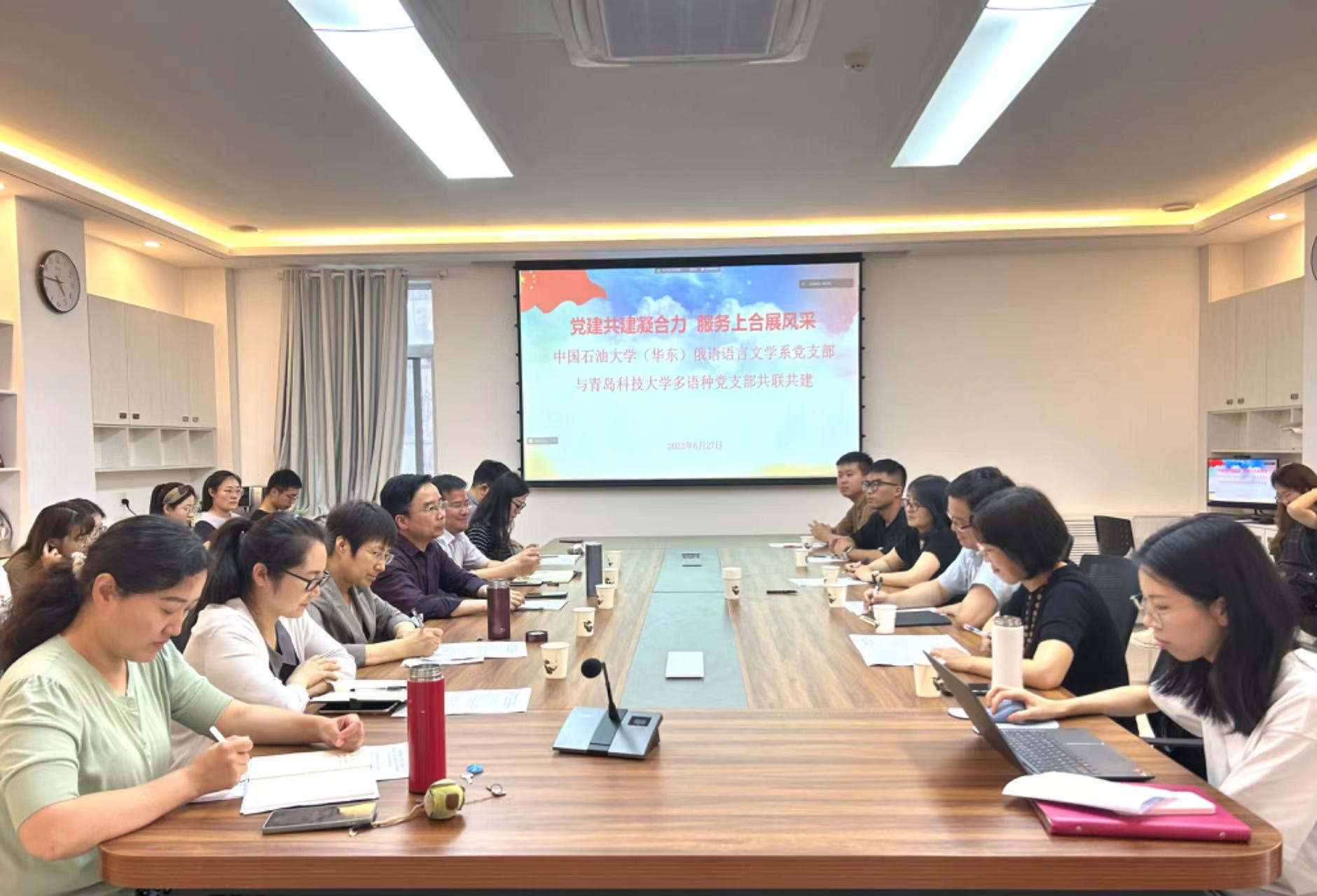 为加强基层党组织建设,创新基层党建工作载体,提高党建工作水平,6月27日,350vip8888新葡的京集团多语种党支部赴中国石油大学(华东)与350vip8888新葡的京集团俄语语言文学系党支部开展了“党建共建凝合力,服务上合展风采”联建共建活动。学院党委统战委员、副院长刘靖与中国石油大学(华东)外语学院党委书记朱惠平、院长毛浩然出席活动,两党支部师生代表参加本次活动。