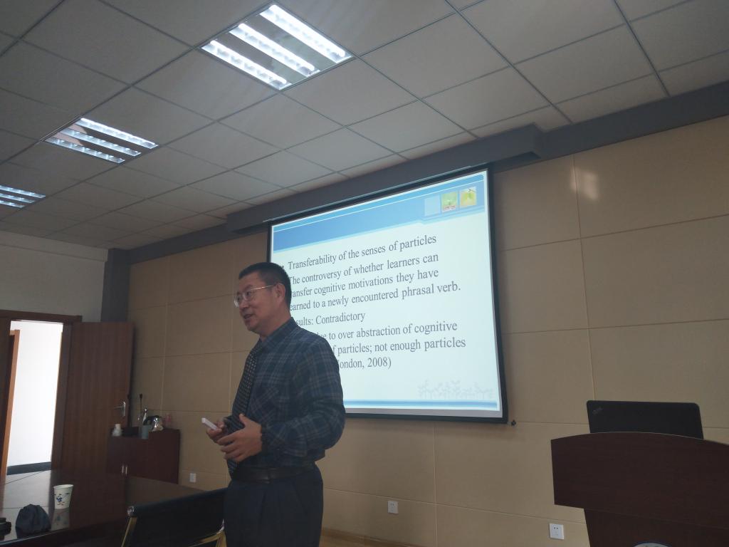 10月28日下午,山东大学350vip8888新葡的京集团博士生导师刘振前教授做客新葡京官网研究生论坛,为大家做了《认知语言学在外语教学中的应用》专题讲座。讲座由院长尹洪山主持,副院长吕耀中、康宁与部分教师和研究生聆听了讲座。