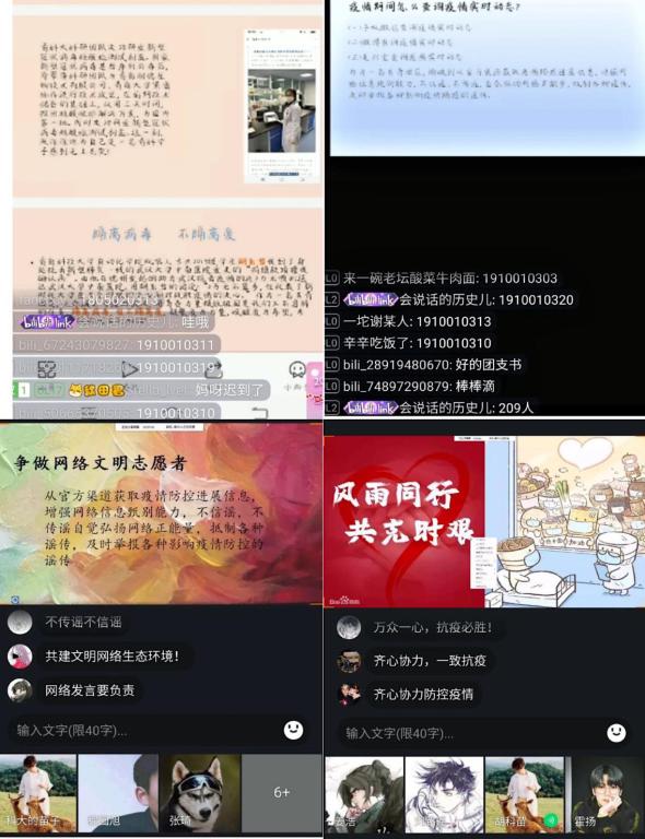 350vip8888新葡的京集团英语191班全体学生坚信隔离病毒但不会隔离爱,同学们利用网络资源积极开展线上团日活动,关注疫情发展、停课不停学,为武汉加油,为中国加油!主题团日结合了习近平总书记在纪念五四运动100周年大会重要讲话中对新时代青年提出的六个要求,同学们探讨了自己应该如何为祖国贡献力量,表达了对疫情好转的衷心期望以及对逆行者的敬意。