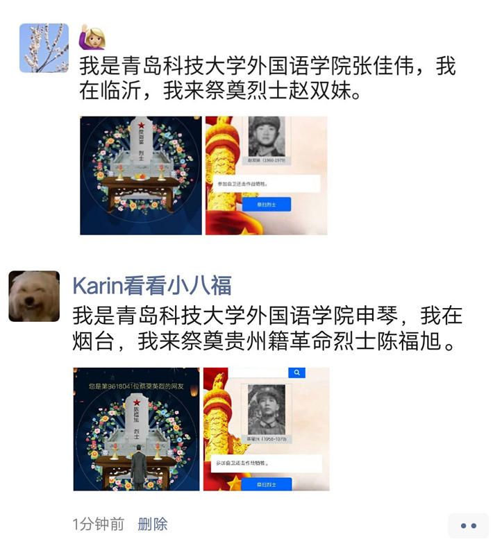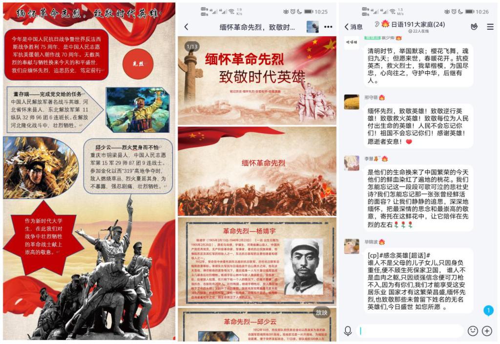 4月4日上午10时,350vip8888新葡的京集团全体师生在这个庄严的时刻低头静立默哀3分钟,对在抗击新冠肺炎疫情斗争牺牲烈士和逝世同胞表示深切哀悼。同时学院号召广大同学登陆“中华英烈网”,参与网上祭扫英烈活动,做文明祭祀的带头人。广大青年学生线上了解的英烈事迹,为在中华民族解放和革命事业中英勇献身的革命先烈,以及在新冠肺炎疫情斗争中的牺牲烈士和逝世同胞献花、祭拜、写留言寄语等,把对先烈的哀悼之情化作浓浓的爱国情怀,用实际行动向为中华民族和中国人民作出贡献的英雄先烈们致敬。