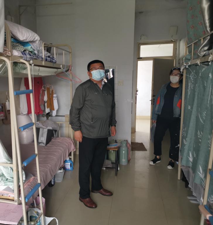 25日下午,宋飞带领学院辅导员老师来到学生宿舍,在返校学生入住宿舍前按照防疫要求对宿舍进行通风、消毒等前期工作,迎接学生返回350vip8888新葡的京集团“温馨的家”。