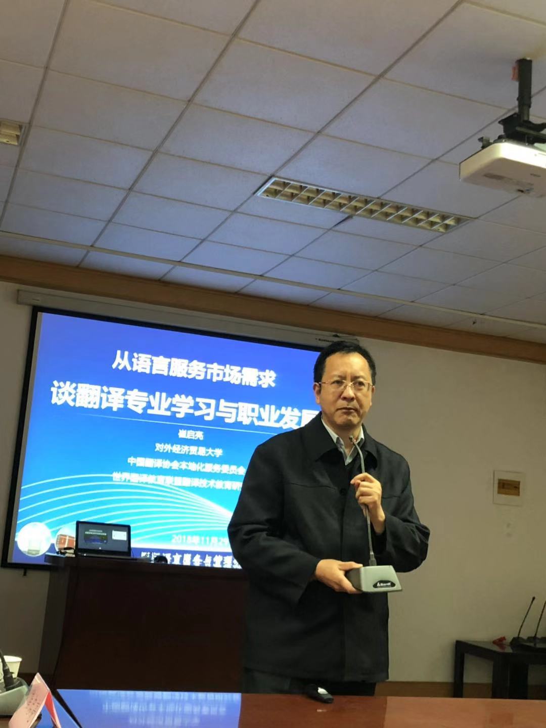 11月29日下午3:30,外经贸大学硕士研究生导师崔启亮应邀来新葡京官网进行学术交流,在经管学院313会议室为大家带来一场题为“从语言服务市场需求谈翻译专业学习与职业发展”的精彩报告。报告由吕耀中副院长主持,院长尹洪山、MTI中心主任房钰及部分翻译硕士师生参加了此次讲座及交流。