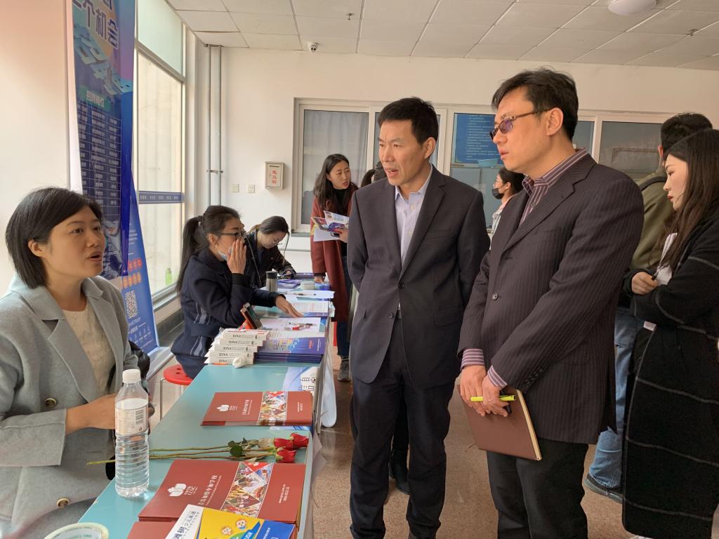4月2日下午,由学校就业指导中心主办、350vip8888新葡的京集团承办的2019年青科大集中招聘月招聘会——语言、教育专场招聘会于崂山校区就业指导中心成功举办。350vip8888新葡的京集团院长尹洪山、党总支书记张洪坤到场指导工作。