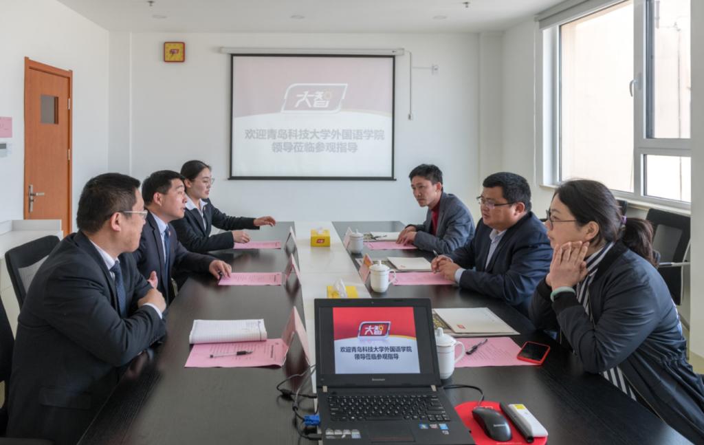 在大智集团人力资源部经理李建峰等人的陪同下,宋飞等人实地参观了大智教育大楼,考察了集团办公环境及运行模式,并与大智集团董事长张维东等人就教育思想大讨论如何推动学生就业进行了座谈交流。座谈会上,宋飞详细介绍了学院专业设置、人才培养以及学生实习就业等情况,并就人才培养、实习实践、外语类人才需求等方面和大智教育集团负责人进行了深入交流,全面了解了企业对外语类人才的需求情况。