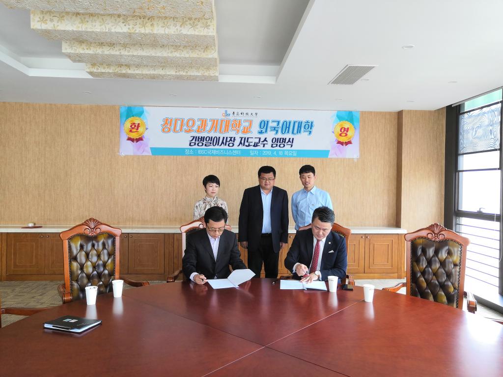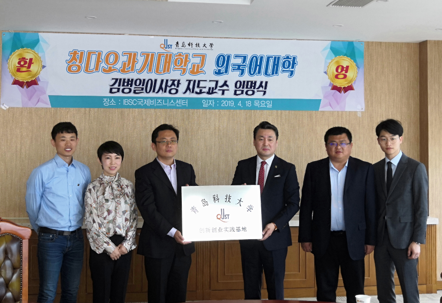 为贯彻落实学校教育思想大讨论动员部署大会相关要求,不断推进创新创业工作,4月18日,350vip8888新葡的京集团与国际商务服务中心共建“创新创业实践基地”签约及揭牌仪式在国际商务服务中心举行。国际商务服务中心理事长、青岛外商投资企业协会韩国投资企业分会城阳区即墨市支会会长金炳一,350vip8888新葡的京集团党总支书记张洪坤、党总支副书记宋飞及相关项目负责人参加了仪式。