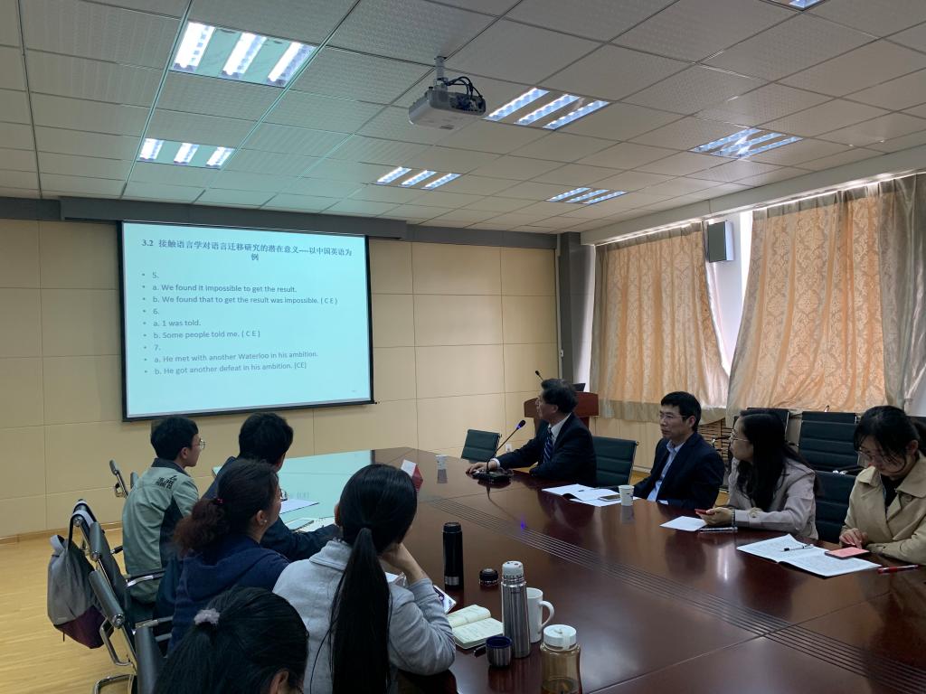 5月8日下午,上海交通大学350vip8888新葡的京集团教授、博士生导师俞理明应新葡京官网邀请在外语楼517室作了题为《语言迁移新视角》的报告。报告会由尹洪山院长主持,副院长吕耀中、院长助理刘靖及部分教师和研究生参加了报告会。