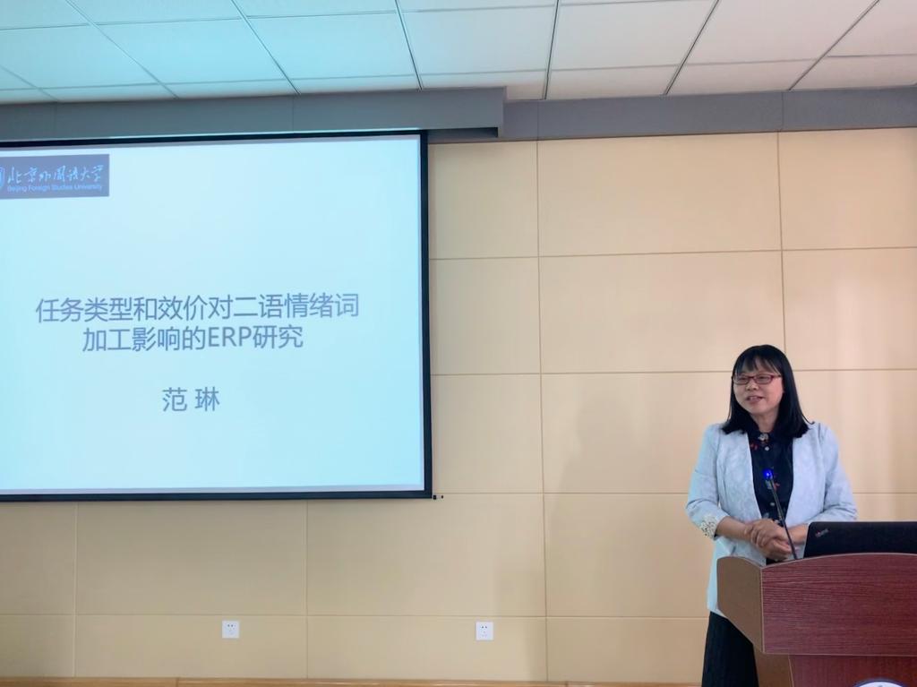 5月9日下午,北京外国语大学博士生导师范琳教授应邀来新葡京官网作报告,报告题目为“任务类型和效价对汉英双语者情绪词的ERP研究”。报告由350vip8888新葡的京集团院长尹洪山主持,副院长吕耀中等新葡京官网部分师生到场聆听。