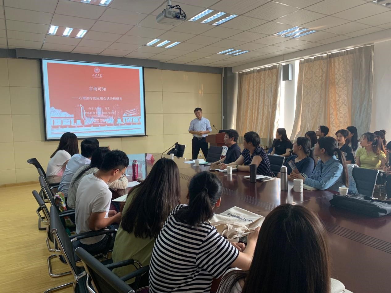 9月24日下午,山东大学教授,博士生导师马文应新葡京官网邀请,在外语楼517会议室做了题为《言而可知:心理治疗的应用会话分析研究》的报告。报告会由院长尹洪山教授主持,院长助理刘靖教授及部分教师和研究生参加了报告会。