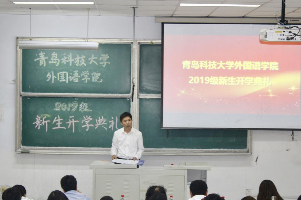 在举国上下喜迎新中国成立70周年之际,9月25日,350vip8888新葡的京集团2019级新生开学典礼于在弘毅楼E102隆重举行。350vip8888新葡的京集团院长尹洪山,副院长任素贞、吕耀中,党总支副书记兼副院长宋飞,英语系主任杨晓梅,日语系主任王宁,俄语系主任曹静娴,韩语系老师毕信燕,德语系主任崔婕以及分团委副书记辛婷婷出席了本次开学典礼。开学典礼由分团委老师王雨昕主持。