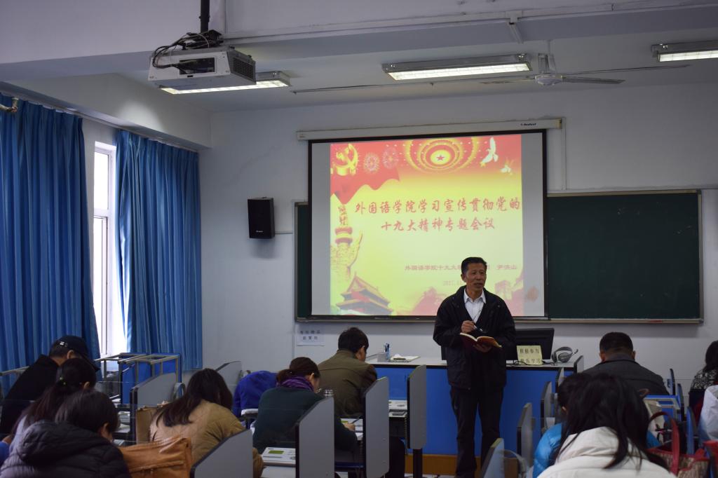 会上,院长尹洪山做了题为《走入新时代、踏上新征程:全面领会党的十九大精神》的报告,他从“新时代”、“新征程”、“美好生活”、“四个伟大”、“全面依法治国”五个方面向党员们解读了十九大精神与我国当前的形势及未来展望,希望全体党员对于十九大精神,做到读懂、学透、做实,用习近平新时代中国特色社会主义思想武装自己,不忘初心、牢记使命,不断把学院的各项工作推向前进,为“五有”高水平和“双一流”大学建设贡献自己的力量。