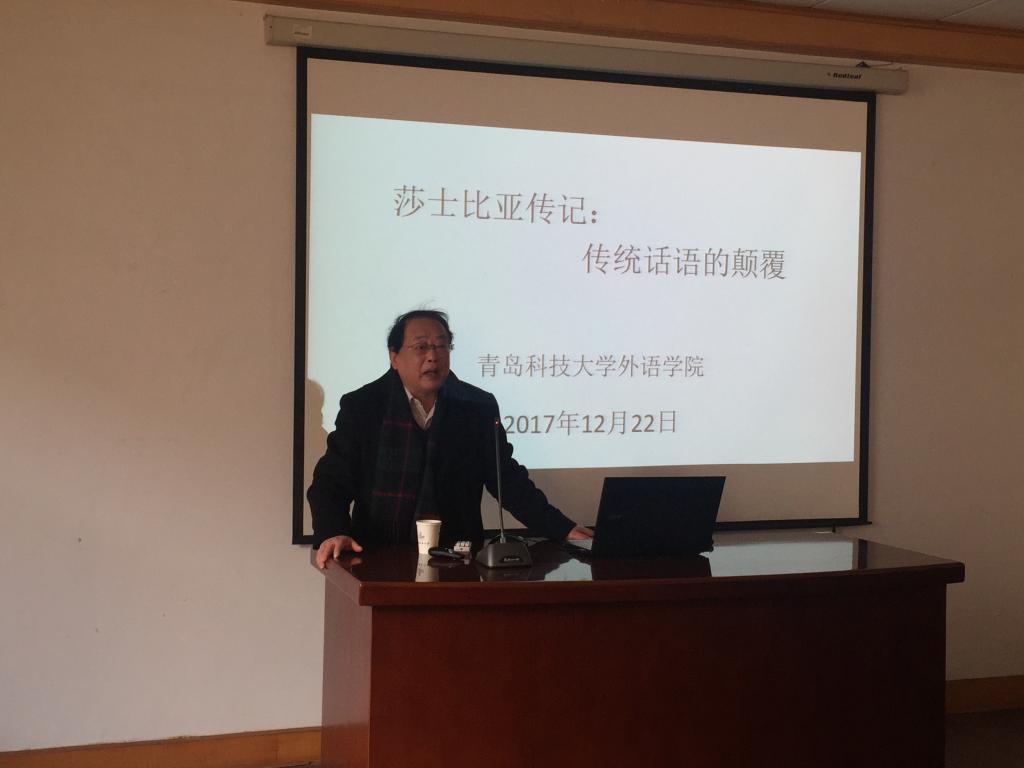 12月22日,上海交通大学访问特聘教授,上海交通大学传记中心主任杨正润教授应邀来我校350vip8888新葡的京集团作了题为“莎士比亚传记:传统话语的颠覆”学术讲座。350vip8888新葡的京集团院长尹洪山,部分教师及研究生参加了此次学术讲座。
