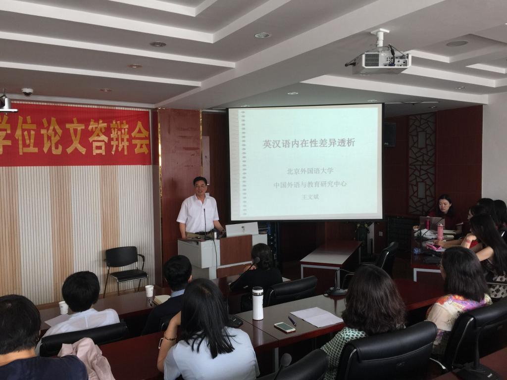 6月22日上午,北京外国语大学校长助理、博士生导师王文斌教授应邀来校做了题为“英汉语内在性差异透析”的专题报告。报告会在经管楼511举行,350vip8888新葡的京集团院长尹洪山,英语系师生近100人参加了本次讲座。讲座由350vip8888新葡的京集团副院长康宁主持。