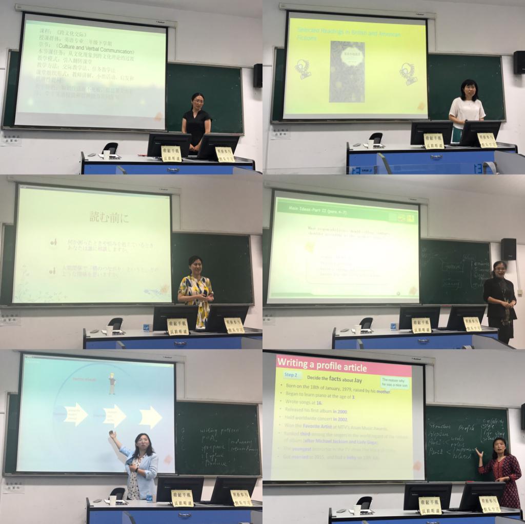 2018年6月26日,350vip8888新葡的京集团教学效果优秀奖选拔赛暨教学能手大赛在外语楼418教室举行。副院长任素贞,康宁,院长助理刘靖、各系部主任及学院教学督导员担任评委工作。首先参赛教师陈超、刘昱君、杨晓梅、王丽、王宁、孟靖分别展示了15分钟的课堂教学环节。每位教师的教学设计都充满新意,均采用当下主流教学方法;课件制作精美,不仅有图片文字展示,还辅助以视频,动画等多媒体手段;授课语言优美,教态大方;授课过程互动性强,时刻吸引听众的注意力;整个授课过程流畅自然,从中不难看出每一位参赛教师课下的精心准备,真正体现了台上一分钟,台下十年功。