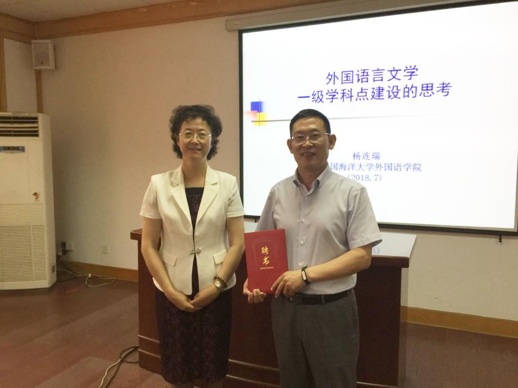 7月4日,中国海洋大学杨连瑞教授受聘为新葡京官网客座教授,聘任仪式在经管楼313教室举行,学校党委常委、副校长张淑华出席并颁发聘书。院领导尹洪山、吕耀中、康宁、宋飞和部分师生代表参加了聘任仪式。