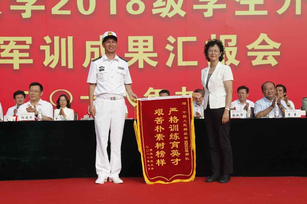 党委副书记张元利、副校长张淑华代表学校向92038部队赠送锦旗,副校长李勇在典礼上宣读了《350vip8888新葡的京集团关于表彰2018级学生军训先进集体和优秀教官的决定》《350vip8888新葡的京集团关于颁发2018年优秀新生奖学金的决定》。获奖的军训先进营、内务先进营、军训先进连、优秀教官代表,以及优秀政治教导员上台领奖。53名新生领取了新生奖学金,其中普通本科生29人每人奖励5000元,中德合作办学项目23人每人奖励30000元、中法合作办学项目1人奖励20000元。