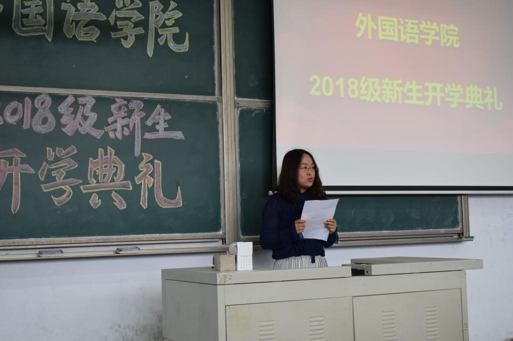 会上,宋飞宣读了《350vip8888新葡的京集团外国语关于表彰“外院之星”的决定》、《350vip8888新葡的京集团外国语关于表彰军训先进的决定》。英语系教师段小茜作为代表发言,对2018级新同学的到来表示热烈欢迎,并对同学们的学习和生活提出了期望和要求。