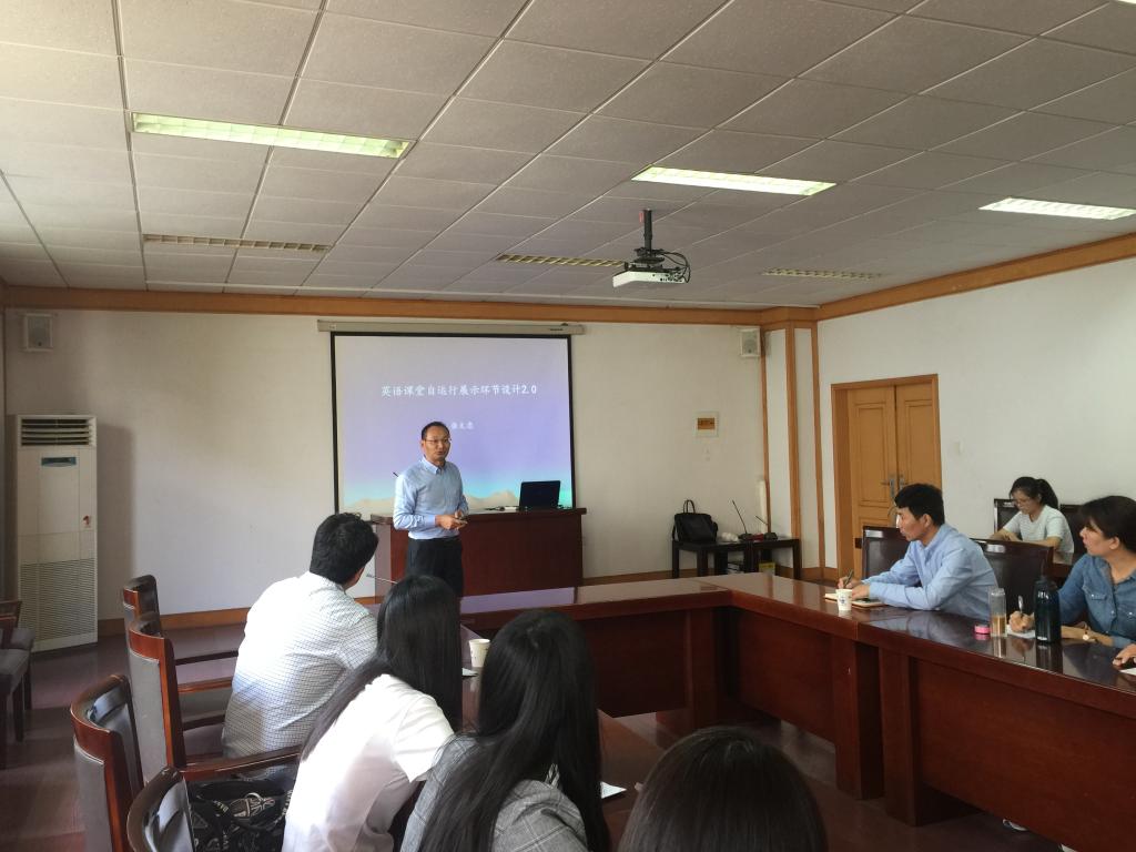9月28日下午,中国海洋大学繁荣工程特聘教授,博士生导师张文忠教授应邀来新葡京官网进行学术交流,在经管楼313会议室做了一场题目为“英语课堂自运行展示环节设计2.0”的学术报告。报告会由350vip8888新葡的京集团副院长吕耀中主持,院长尹洪山以及350vip8888新葡的京集团的部分教师与学生参加了这次讲座及交流。