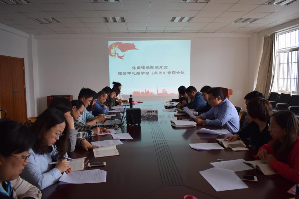 会上,党总支书记张洪坤带领大家共同学习了校党委书记、校长马连湘在2018年度基层党支部书记业务培训班上的讲话精神,他表示马书记的讲话高屋建瓴,希望大家能够认真学习,着力创建优秀党支部。接着,安排部署了学习贯彻《条例》“八个一” 系列活动。他指出,老师们要带头学习贯彻《条例》,作出示范、当好表率。院长尹洪山指出,中共中央对《条例》的修订,内容更加详实、更加科学、突出政治性,彰显时代性,希望大家能够结合工作实际认真学习,坚定地把《条例》贯彻落实好,为落实全面从严治党要求,加快学院发展提供坚强纪律保证。