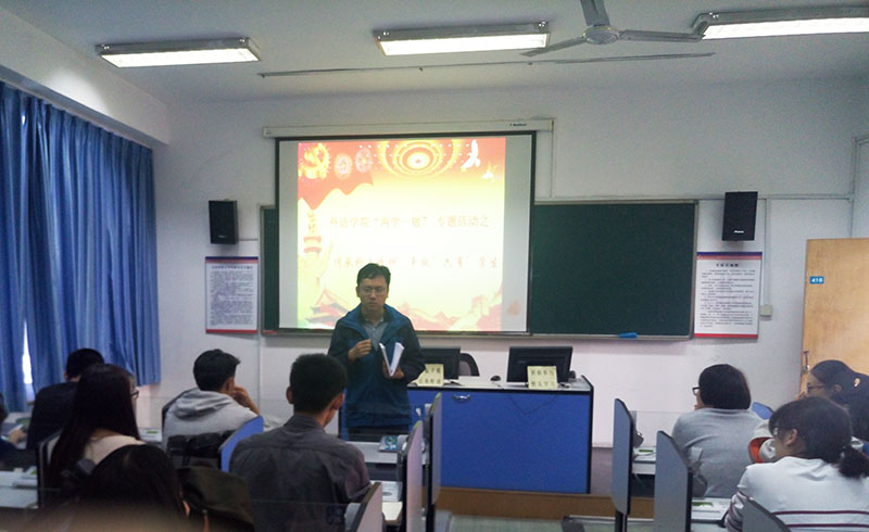 10月14日下午,350vip8888新葡的京集团在418语音室开展了“传承科大精神,争做‘六有’学生”主题教育活动,学院全体辅导、学生党员、入党积极分子近100人参加了活动,学院党总支副书记张洪坤为参会同学做专题报告。