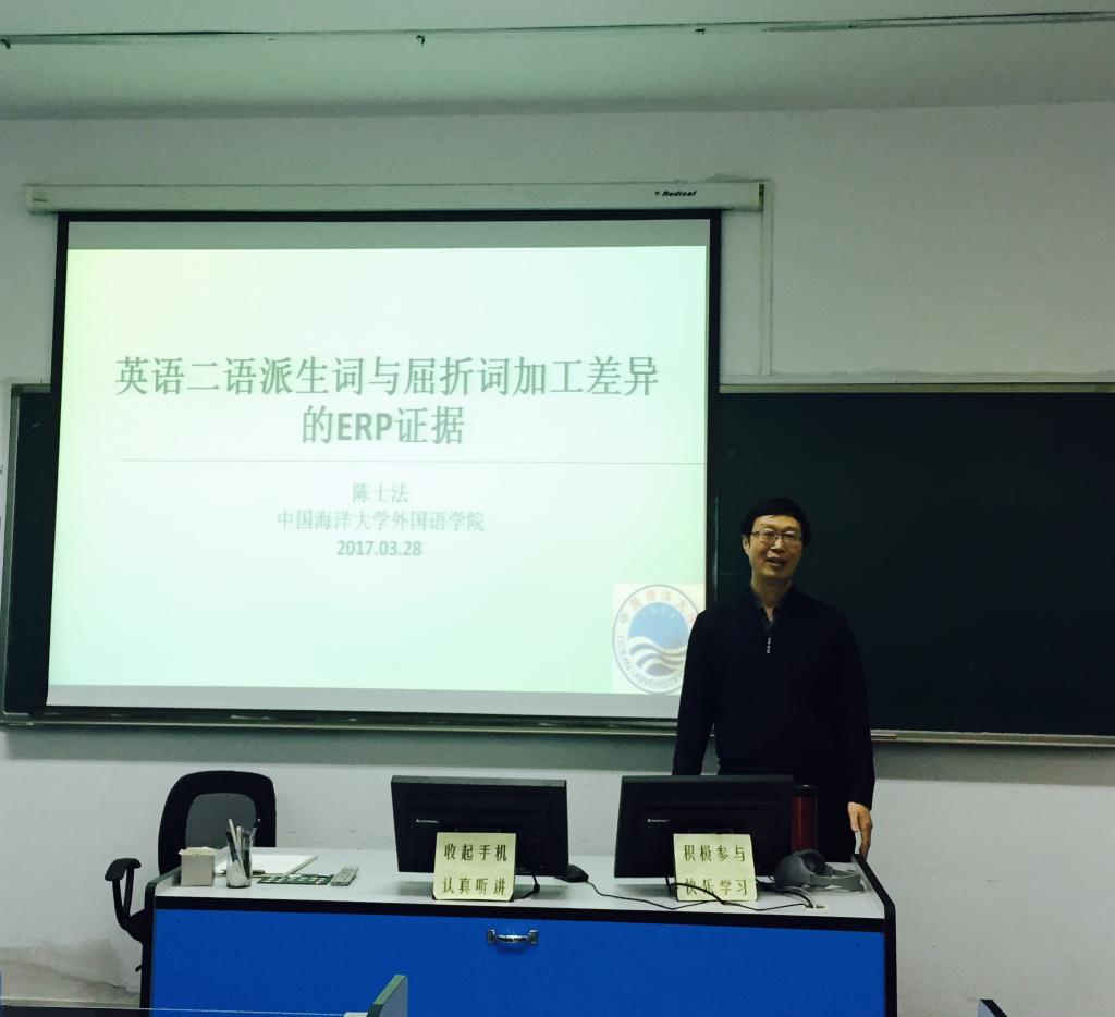 3月28日下午,中国海洋大学350vip8888新葡的京集团教授、硕士研究生导师陈士法教授应邀来新葡京官网作报告。报告主题为“英语二语派生词与屈折词加工差异的ERP证据”。报告会由副院长吕耀中主持,院长尹洪山及学院部分师生参加了此次报告会。