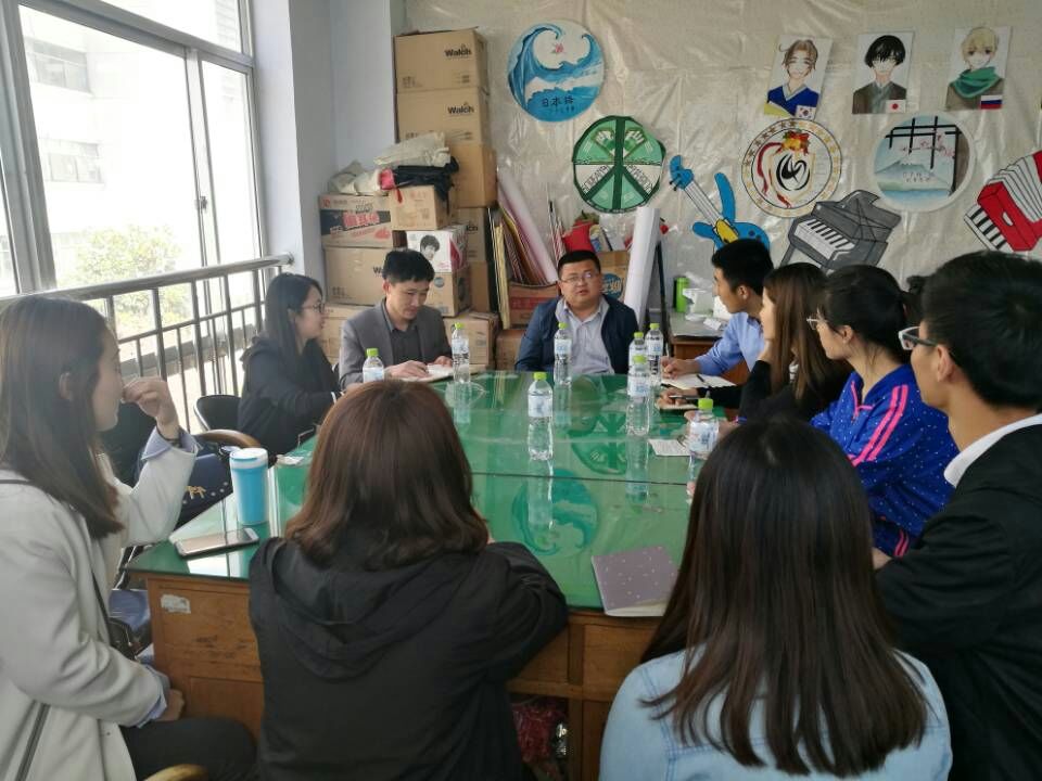 为了加强两校区学生工作的交流,提高学生会工作水平,4月18日外语学院在学院楼514室举行了的两校区学生会工作研讨会。350vip8888新葡的京集团党总支副书记宋飞、两校区辅导员辅导员,以及两校区学生会主要学生干部出席了本次会议,会议有分团委书记贾明明主持。