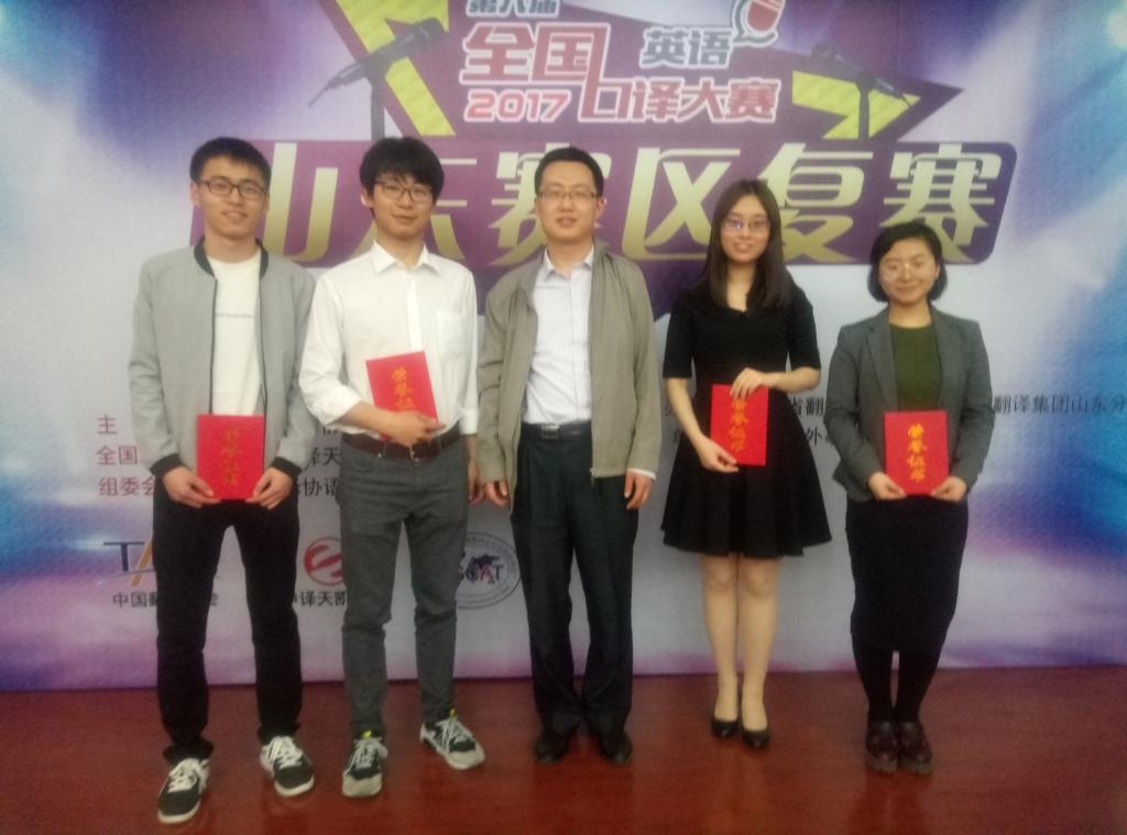 350vip8888新葡的京集团派出的选手不负众望,16级MTI的王晓南、王策和王露原获得三等奖,英语141班的常菁获得优秀奖。英语系丁超老师获得优秀指导教师奖。山东大学、中国海洋大学和350vip8888新葡的京集团包揽了本次复赛的一、二和三等奖。获得一、二和三等奖的选手将代表山东赛区于5月份参加华东大区的复赛。