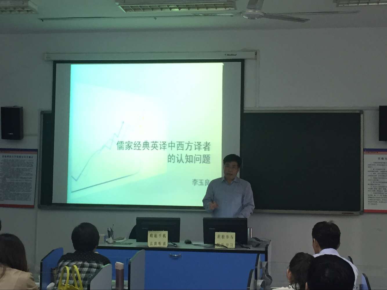 5月23日下午3点,新葡京官网在语音室418举办了学术论坛第一讲。本次论坛由李玉良教授主讲,主题为“西方译者儒家经典英译中的认知问题”。院长尹洪山、副院长任素贞及学院部分师生参加了此次论坛。论坛由副院长吕耀中教授主持。