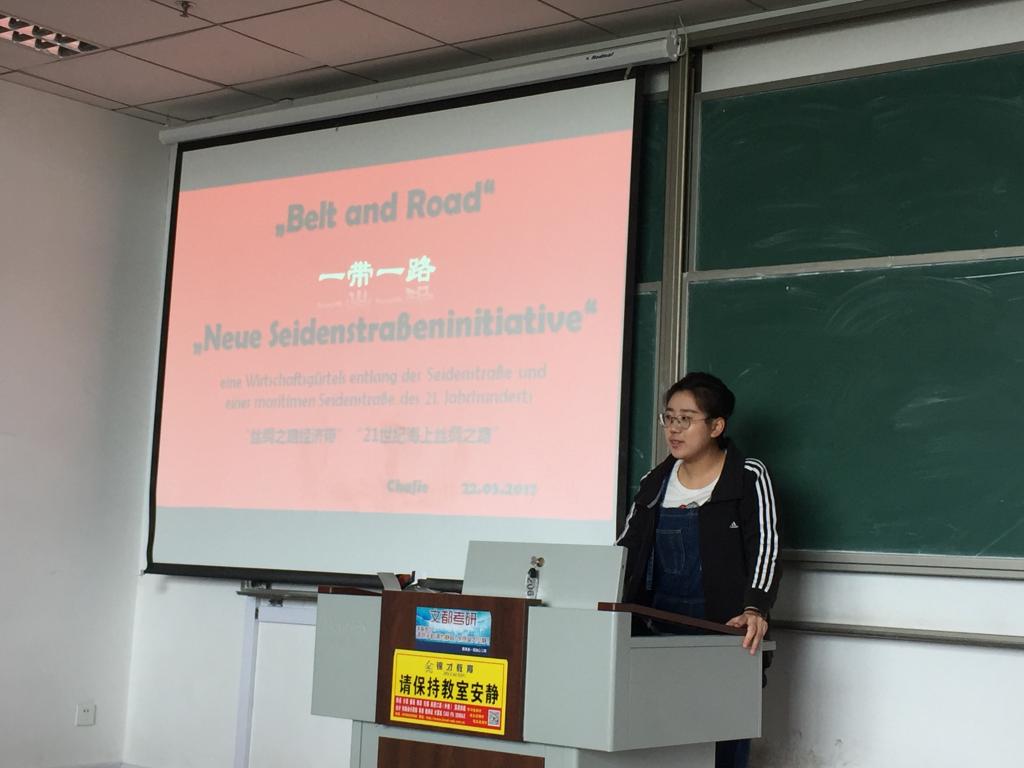 活动主要在专业课中开展,每节课拿出五分钟的时间,翻译习近平总书记系列重要讲话、“一带一路”、学校第十次党代会精神等题材的通讯或者文章,增强学生对所学语言运用能力。通过对时事的翻译,增加了专业课教学的趣味性,提高了学生学习兴趣,帮助学生了解当下的时事政治,在课堂上引起了强烈的反响和共鸣。此外,为了提高课堂趣味性,学院理论学习中心组开展“读书分享会”活动,组织老师集体备课,在潜移默化中提高了教师的政治修养,提升了学习动力,一举多得。