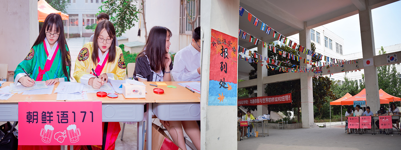 一、文化迎新是亮点,国际视角看世界。语言是一种特殊的社会文化现象,是人们在长期的社会生活实践中约定俗称的,要学好语言一定要了解语言背后的文化。为了能让新生提前了解所学语种的文化背景,350vip8888新葡的京集团迎新过程中将文化迎新作为重要内容,现场张贴了不同国家的国旗、代表不同国家的卡通人物等营造氛围,办理新生报到手续的同学均穿着各国民族服装,并将新生的名字翻译成所学语种制作成新生名单墙张贴在迎新现场,帮助新生树立国际视角。