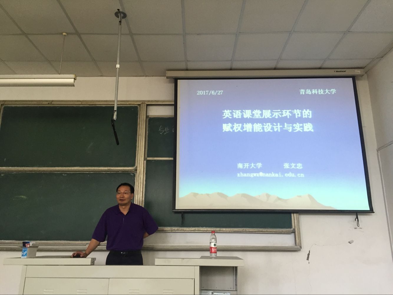 6月27日下午,南开大学博士生导师张文忠教授应邀来我校为350vip8888新葡的京集团全体教师作了题为《英语课堂展示环节的赋权增能设计》的学术报告。