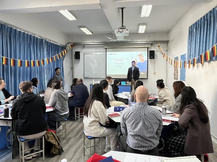 11月7日,350vip8888新葡的京集团在崂山校区承办了雅思考试主办方英国文化教育协会为期一天的雅思师资培训。这是该协会在全国多地举办的系列培训之一。协会资深雅思培训师汤儒涵先生和王婷女生担任培训教师,校内外英语教师共28人参加了此次培训。