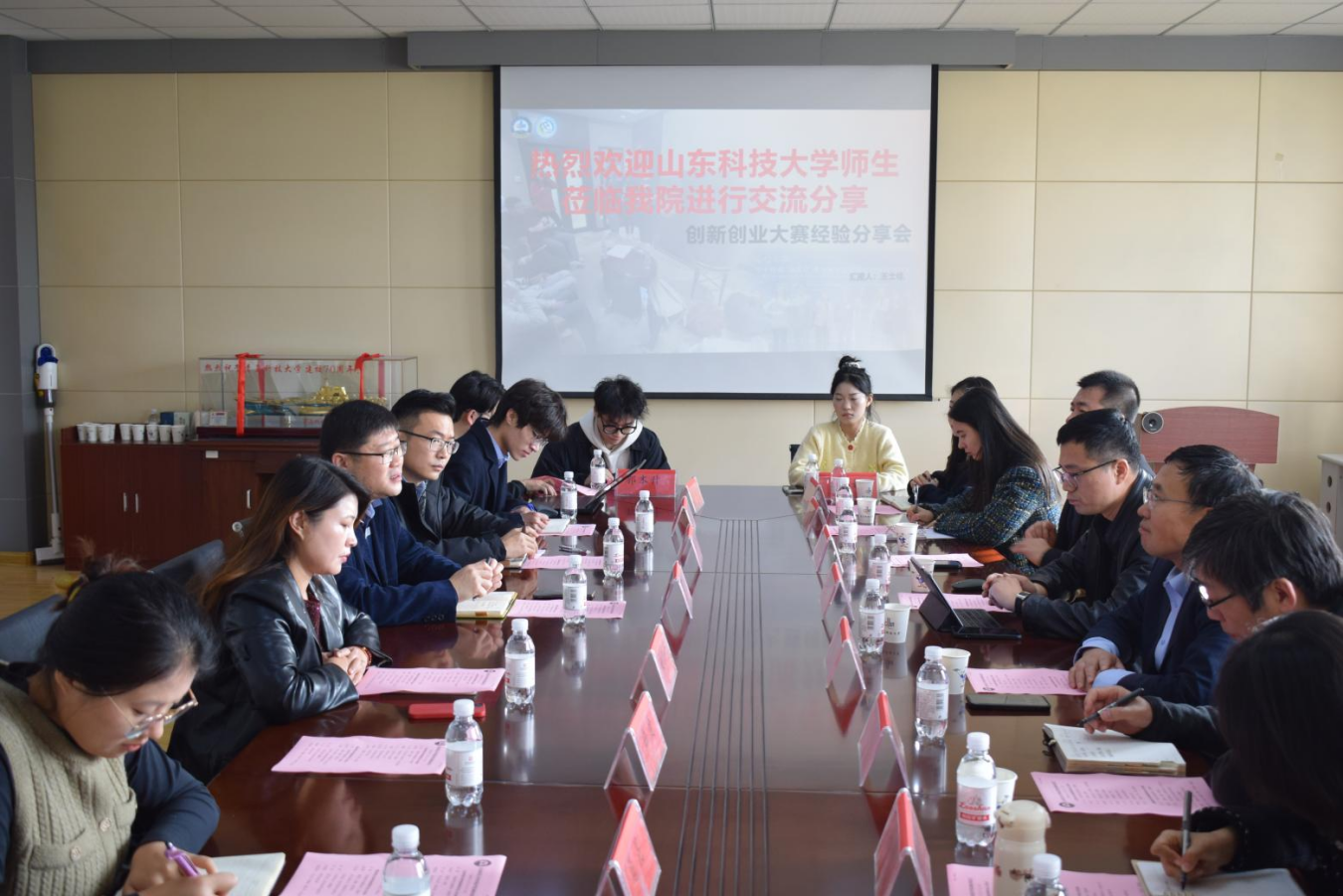 山东科技大学350vip8888新葡的京集团一行对新葡京官网在学科竞赛方面取得的突破表示赞赏。刘强指出,山东科技大学与350vip8888新葡的京集团同为驻青高校,两个学院可以在人才培养、教学研究等方面实现资源共享与互利共建。刘强还就辅导员工作室、学生教育管理等方面分享了经验做法。双方就学生工作、教学工作和专业建设等方面进行了交流。