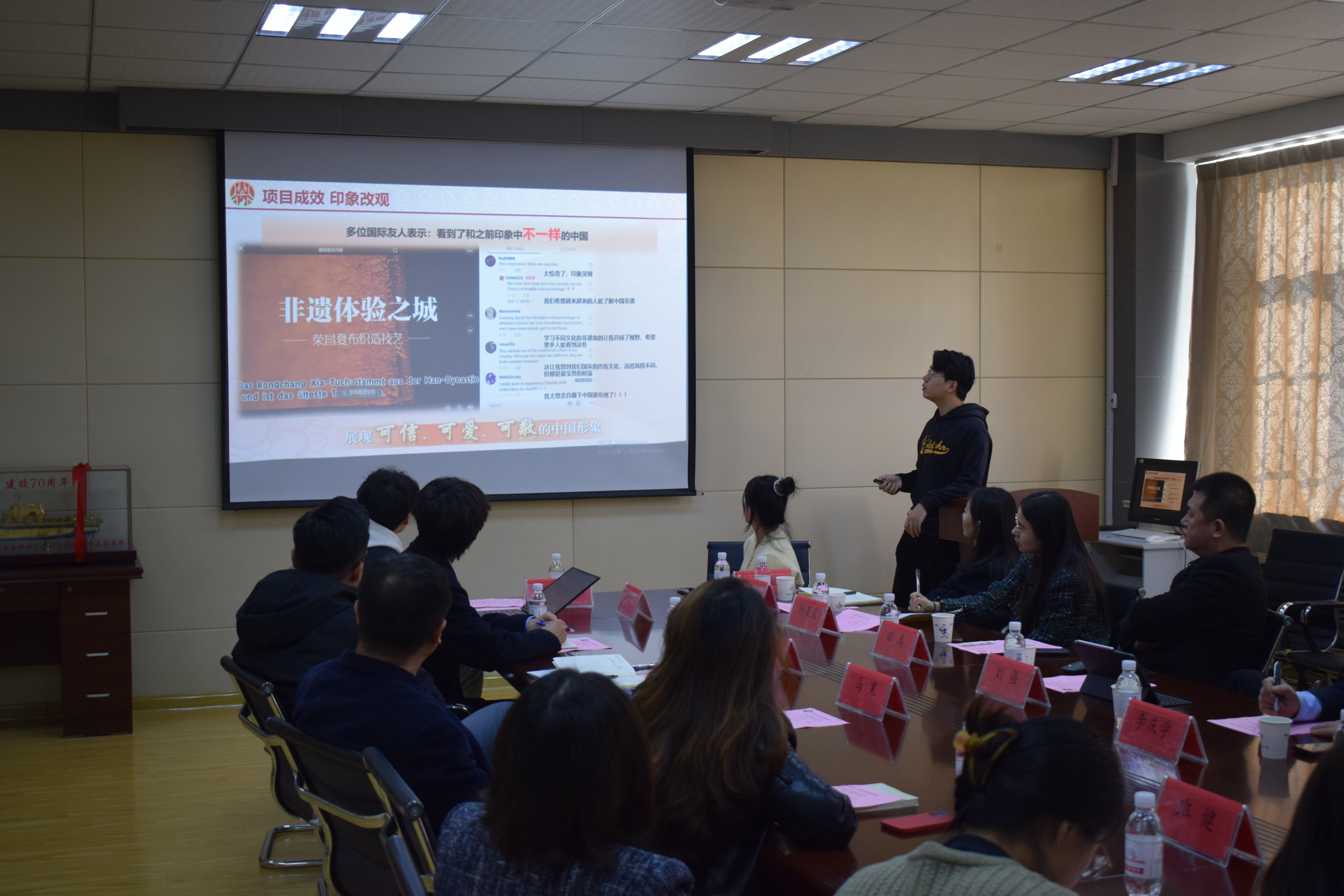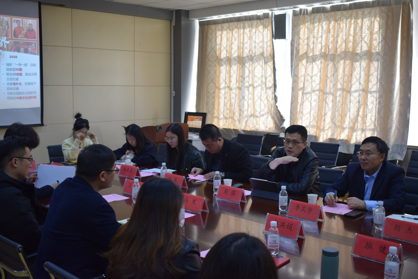 座谈会上,马寒对山东科技大学350vip8888新葡的京集团一行的来访表示欢迎,介绍了学院在人才培养、专业设置、学科竞赛、志愿服务活动等情况。赵洪娟和其指导的“非你莫属——一带一路非遗破局者”项目团队就如何打造优秀团队、新文科项目在“挑战杯”赛事中如何凸显优势等问题展开交流分享。