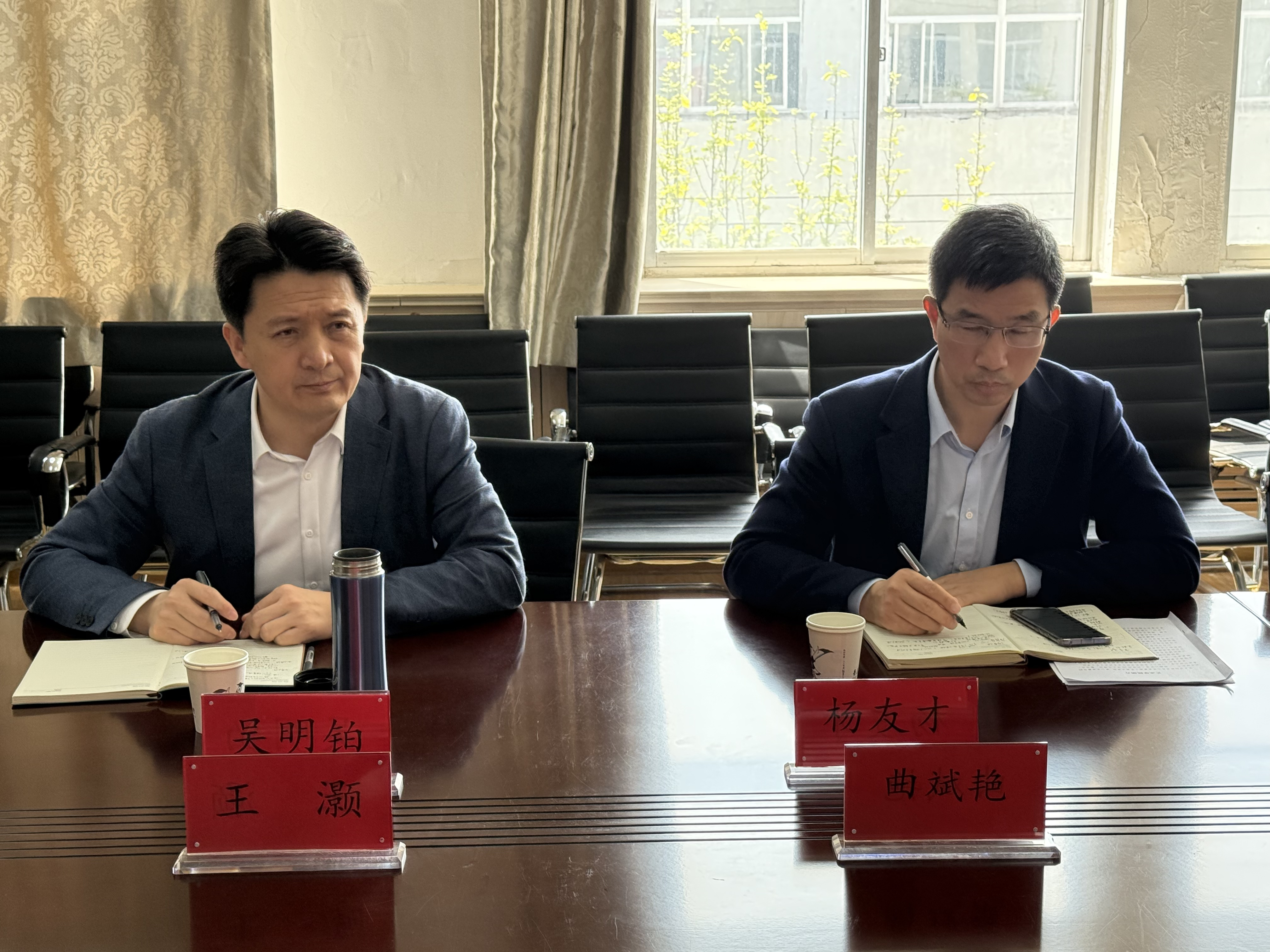 4月16日上午,学校党委常委、副校长吴明铂到350vip8888新葡的京集团调研,人文社科处处长杨友才和350vip8888新葡的京集团领导班子成员参加调研,调研会由学院党委书记曲斌艳主持。